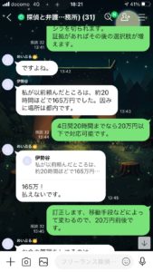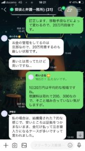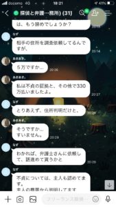 オープンチャット、探偵の浮気調査、相場感のやり取り